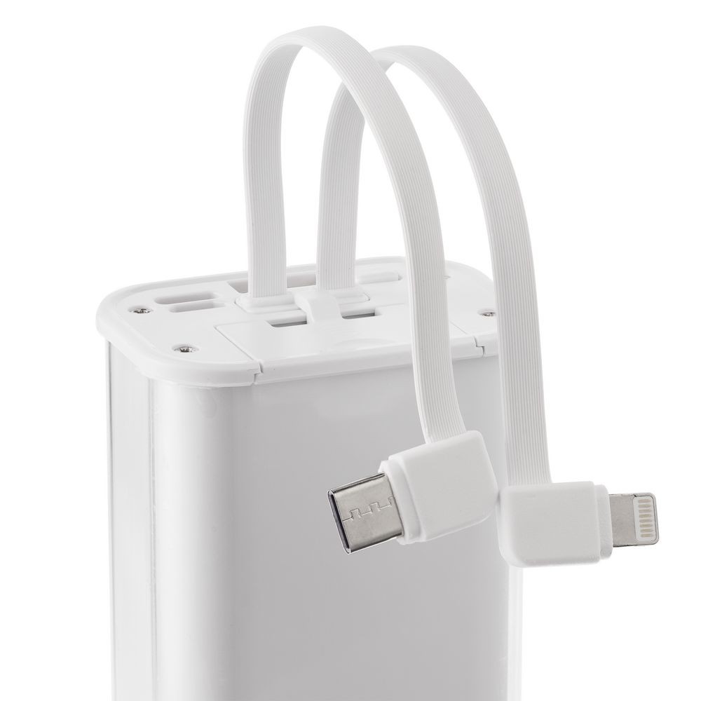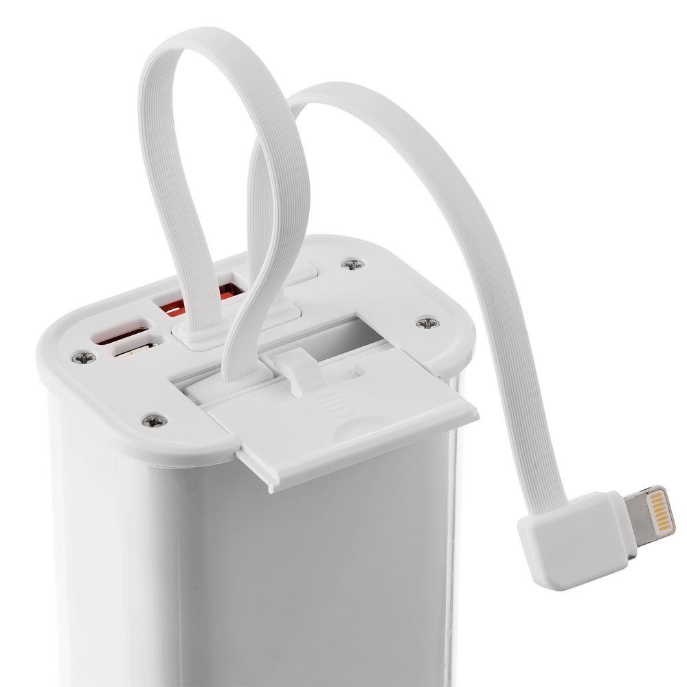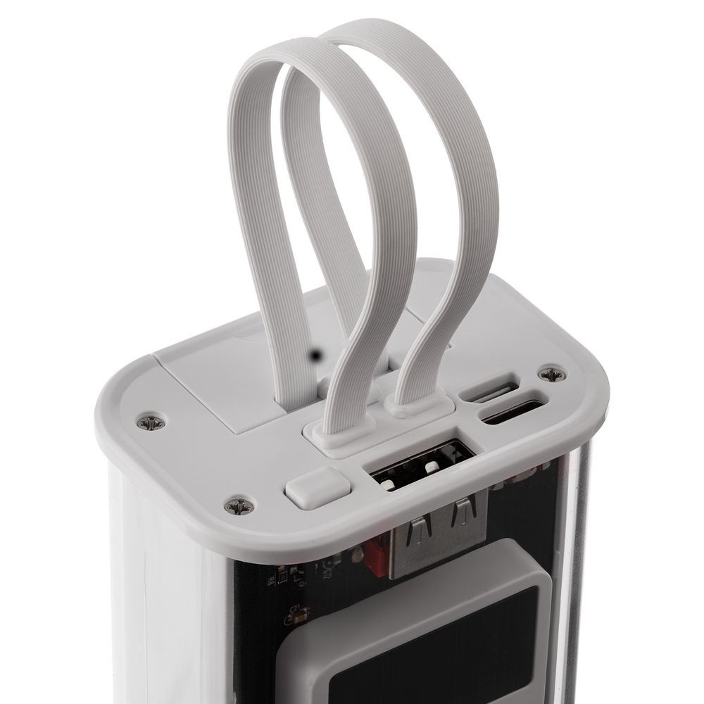 – Тype-C, Lightning (кабели): 5 В, 2 А; USB-А QC, Type-C QC и PD (на корпусе): 5 В, 2 A; 9 В, 2 A/12 В, 1,5 A - Время зарядки: до 3 часов при использовании зарядного устройства с разъемом Type-C и поддержкой функции QC 3.0