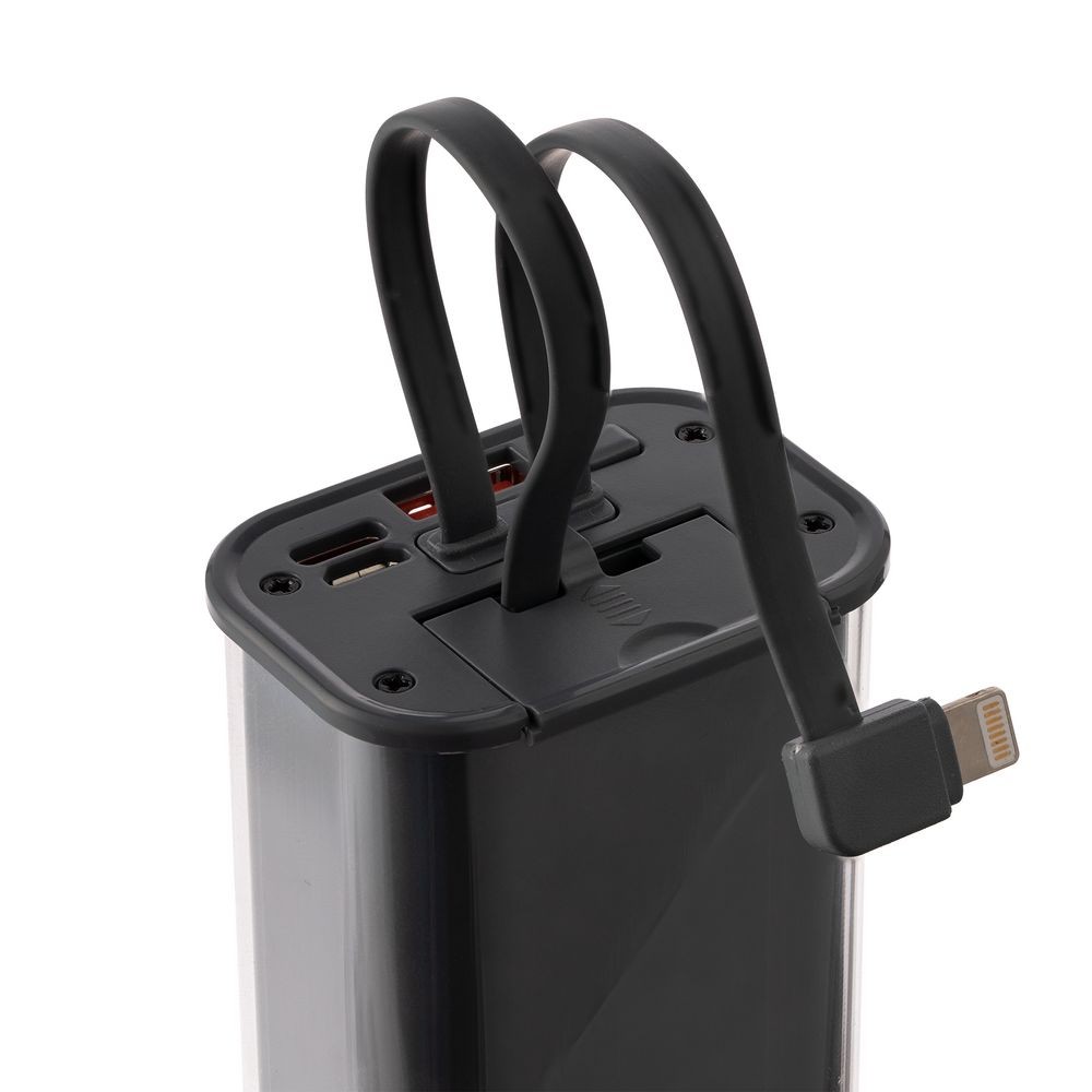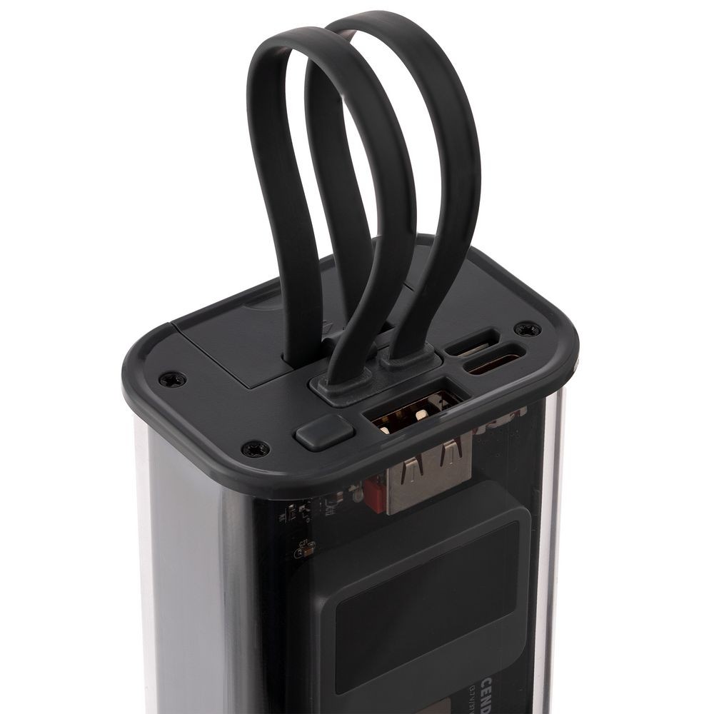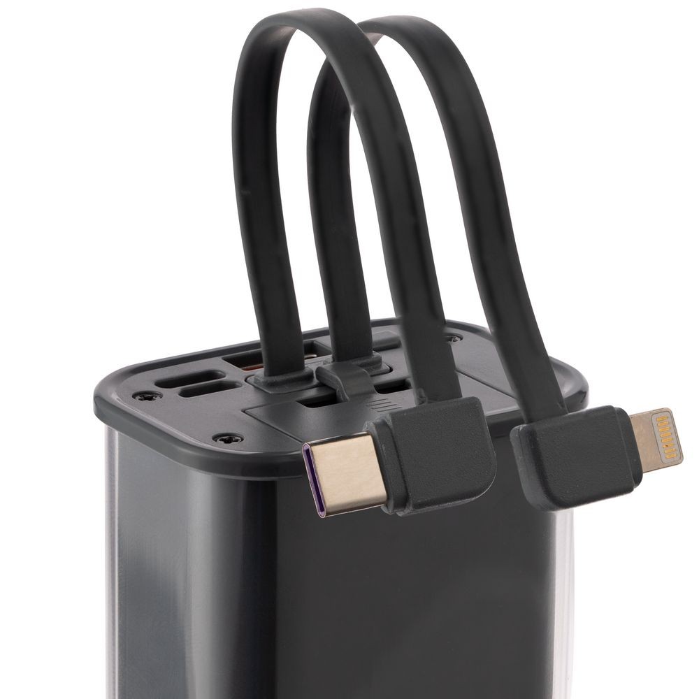 – Тype-C, Lightning (кабели): 5 В, 2 А; USB-А QC, Type-C QC и PD (на корпусе): 5 В, 2 A; 9 В, 2 A/12 В, 1,5 A - Время зарядки: до 3 часов при использовании зарядного устройства с разъемом Type-C и поддержкой функции QC 3.0
