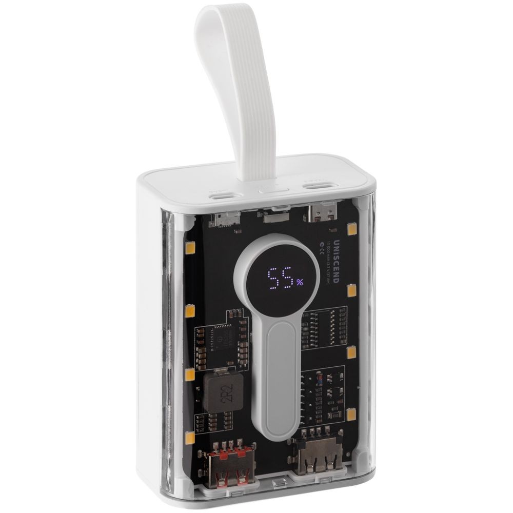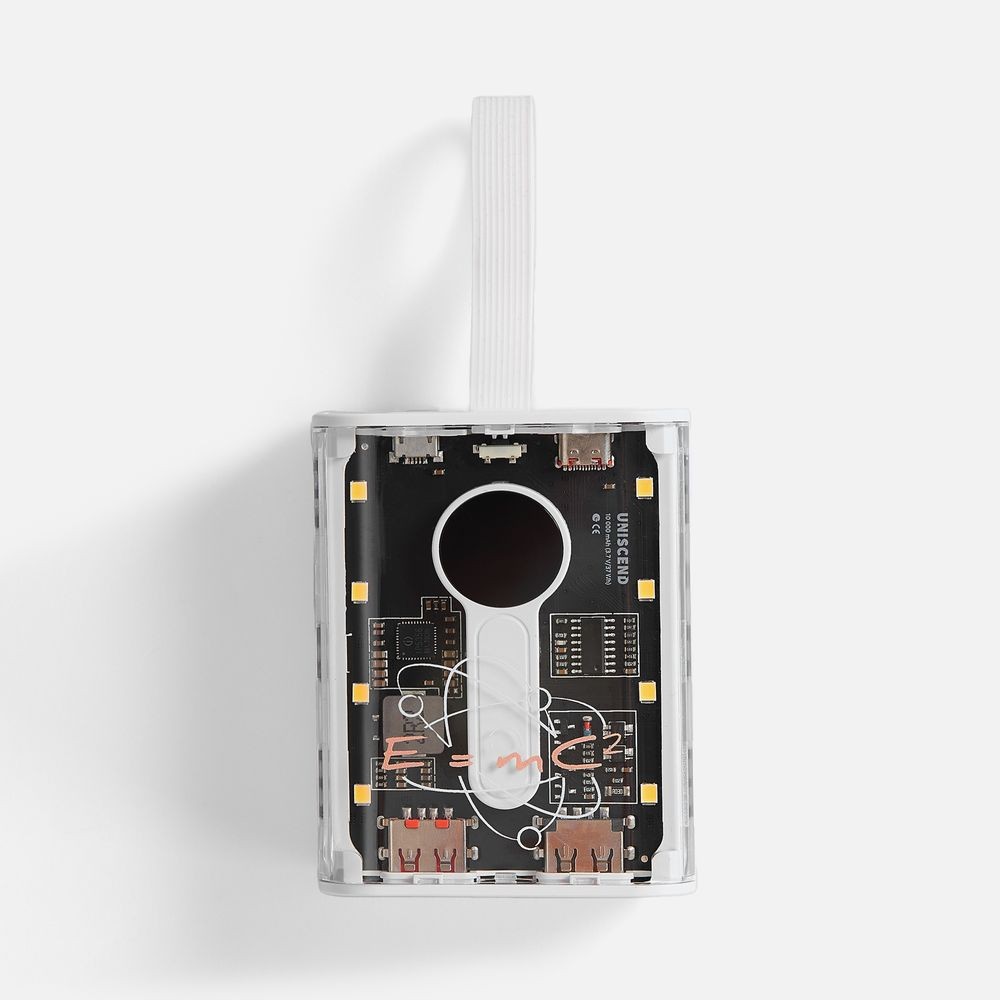Необычный дизайн коллекции Uniscend Trellis выгодно выделяет новую серию устройств из прозаичного ряда внешних аккумуляторов. Они не поддерживают беспроводную зарядку, зато точно привлекают внимание: под прозрачной панелью хорошо видны электронная начинка и цифровой индикатор оставшегося в аккумуляторе заряда, а мягкая подсветка светодиодами теплого оттенка логичным образом дополняет технологичный внешний вид.
