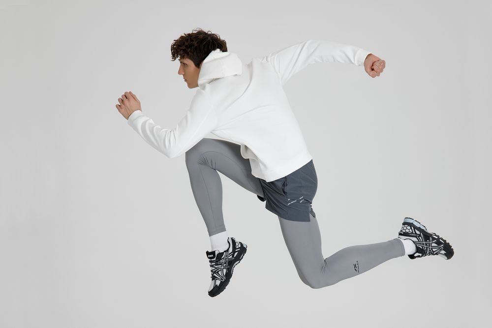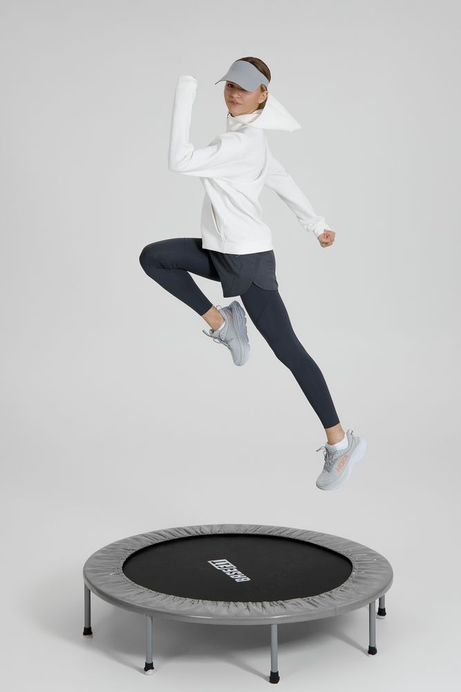Такой «сэндвич» хорошо держит форму (а еще приятно пружинит под пальцами), но при этом остается легким и эластичным, не сковывает движений и отводит лишнюю влагу. Внутренняя ячеистая структура улучшает циркуляцию воздуха, позволяя коже дышать, — а значит, можно не бояться «эффекта парника» во время тренировки или активной прогулки.Два типа плетения одновременно создают и совершенно гладкую изнанку, и мягкую наружную поверхность, тактильно напоминающую бархатистый хлопок.