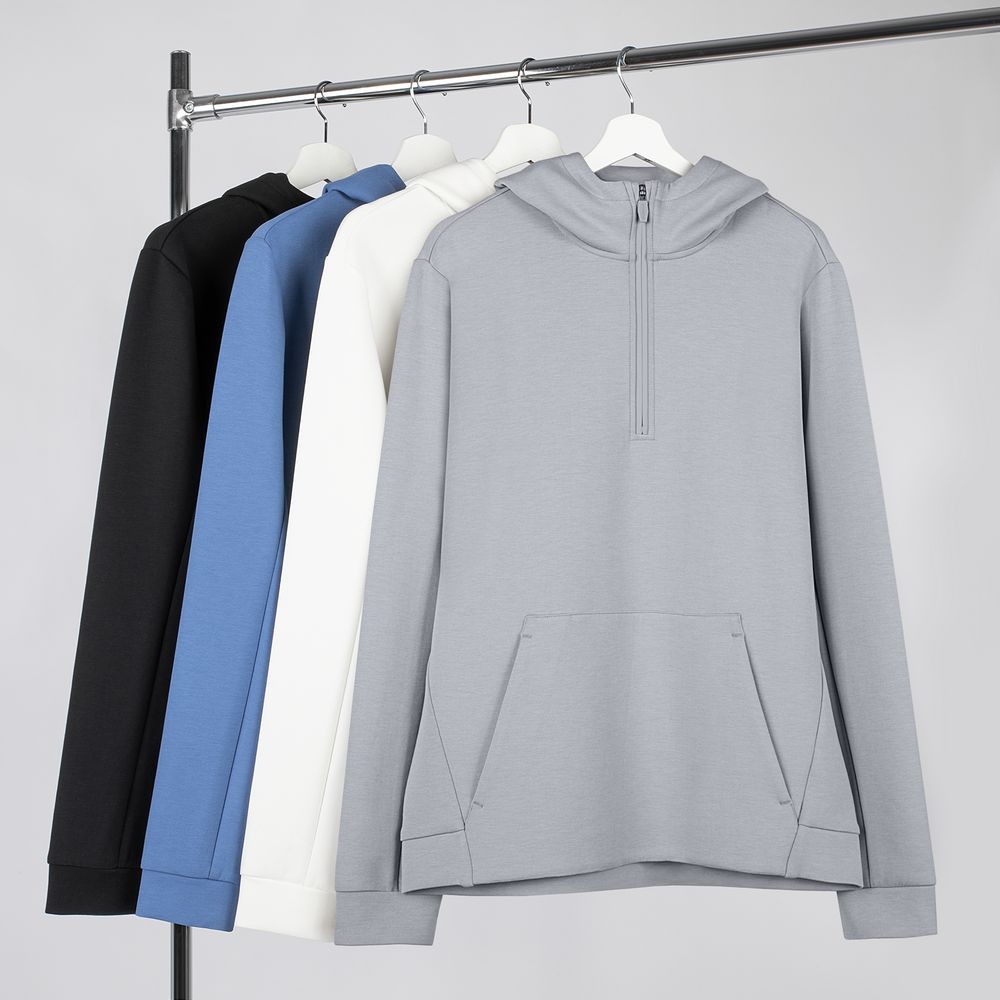 Такой «сэндвич» хорошо держит форму (а еще приятно пружинит под пальцами), но при этом остается легким и эластичным, не сковывает движений и отводит лишнюю влагу. Внутренняя ячеистая структура улучшает циркуляцию воздуха, позволяя коже дышать, — а значит, можно не бояться «эффекта парника» во время тренировки или активной прогулки.Два типа плетения одновременно создают и совершенно гладкую изнанку, и мягкую наружную поверхность, тактильно напоминающую бархатистый хлопок.