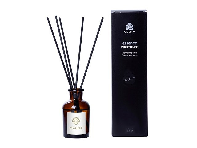 Аромадиффузоры бренда KIANA создают приятную атмосферу спокойствия, которая помогает отдохнуть и настроиться на позитивные мысли и эмоции. Euphoria — часть серии Essence Premium, премиальной линейки KIANA, которая объединяет ароматы для дома повышенной концентрации. Это умиротворяющий аромат мяты и цитрусов, переплетающийся с древесными и пряными нотами. Объём диффузора 50 мл. Его будет достаточно для умеренного поддержания аромата в комнате до 15м2 в течение двух месяцев использования. Насыщенность аромата регулируется количеством используемых фибровых палочек. • Создаст приятную атмосферу спокойствия • Умиротворяющий • Хватит на два месяца использования Essence Premium предлагает вашему вниманию насыщенные и глубокие ароматические композиции, погружающие в негу и блаженство. Пирамида аромата состоит из верхних, средних и базовых нот, которые освежат воздух в вашем доме и создадут приятную атмосферу.