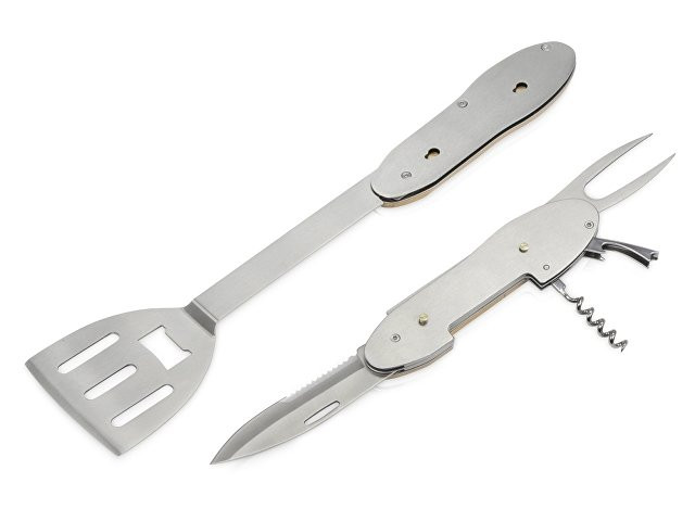 Мультиинструмент для барбекю "Blade" состоит из 5 предметов: - лопатка - вилка для барбекю - штопор - открывалка для бутылок - нож BBQ мультитул с легкостью разделяется на 2 части. В комплекте индивидуальный брендированный чехол, на котором эффектно будет смотреться тиснение. Поставляется в цветной коробке.