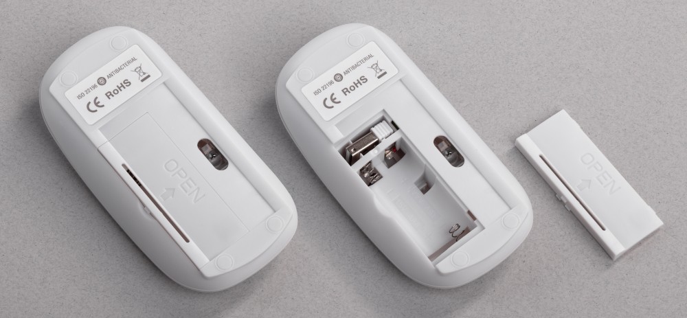 Беспроводная компьютерная мышь с антибактериальным покрытием корпуса с эргономичным дизайном. Для работы необходимы батарейки тип АAA (2 шт., не входят в комплект). Чувствительность 800-1200-1600 dpi.