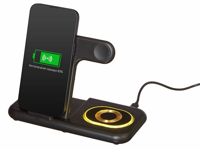 Беспроводная зарядная станция на 3 устройства MajestiQ с прогрессивным дизайном: модуль беспроводной зарядки в вертикальном сегменте станции может менять свое положение по принципу слайдера. Это позволяет настроить положение под размер любого смартфон, не снимая чехла. На станции можно заряжать три беспроводных устройства одновременно: смарт-часы Apple, смартфон и беспроводные наушники. Вместо наушников можно расположить для зарядки второй смартфон. MajestiQ поддерживает быструю беспроводную зарядку 15 Вт. * В зарядные модули встроена атмосферная подсветка с тремя уровнями яркости. Поставляется в сложенном виде, угол наклона можно выставить практически любой. • настраиваемая высота вертикального модуля зарядки • быстрая беспроводная зарядка до 15 Вт • 3 яркости подсветки зарядных мест • регулируемый угол наклона станции * при наличии сетевого адаптера 18 Вт и выше (в комплект не входит).