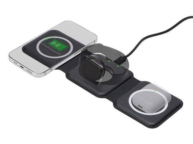Беспроводная зарядная станция 3 в 1 — это современное решение для быстрой и удобной зарядки ваших устройств. Эта компактная и практичная модель позволяет заряжать сразу три устройства одновременно- любой смартфона и наушники с поддержкой беспроводной зарядки по протоколу Qi, и часы Apple. - Мощность до 15 Вт: При подключении к сетевому адаптеру 18 Вт - Складная конструкция: Удобная складная форма делает станцию портативной и легко транспортабельной. Вы можете взять ее с собой в поездки или хранить в небольшом пространстве без проблем - Поддержка MagSafe: Совместимость с технологией MagSafe обеспечивает надежное магнитное прикрепление и оптимальную передачу энергии для устройств Apple, таких как iPhone, AirPods и Apple Watch - Элегантный дизайн: Простой и минималистичный внешний вид станции гармонично впишется в любой интерьер или рабочее пространство.
