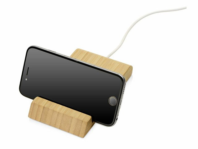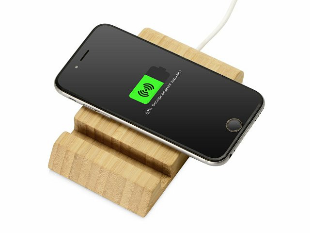 Беспроводное зарядное устройство «Jetty» в корпусе из натурального бамбука поддерживает функцию быстрой зарядки Qi-совместимых моделей смартфонов. Также устройство можно использовать как подставку для смартфона. - быстрая беспроводная зарядка 10 Вт - подставка для смартфона - натуральный бамбук — экологичный быстро возобновляемый материал - доступно несколько видов нанесения для брендирования