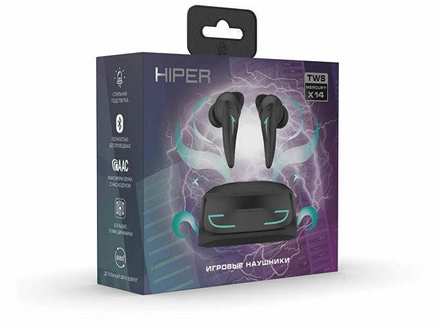 HIPER TWS Mercury X14 – это беспроводные наушники для тех, кто предпочитает неповторимый стиль и технологичный дизайн. Вы оцените невероятное удобство в сенсорном управлении музыкой, а также в переключении режимов игры, музыки или звонка. • Система активного шумоподавления (АNC). • Низкая задержка передачи звука - 50-60 мс. • Подключаются по Bluetooth 5.1. • Чёткость звука обеспечивают динамики 13 мм чувствительностью 112 дБ. • Ёмкость аккумуляторов в каждом наушнике 35 мАч • Время активной работы 4.5 часа, работа в режиме ожидания 140 часов, время зарядки 1.5 часа. • Чехол-зарядка оснащён портом type – C и индикатором, отображающим уровень заряда кейса и каждого наушника. • Ёмкость аккумулятора кейса 350 мАч, время работы от аккумулятора в кейсе 6 часов. • Функция поддержки голосовых ассистентов Google, Siri.
