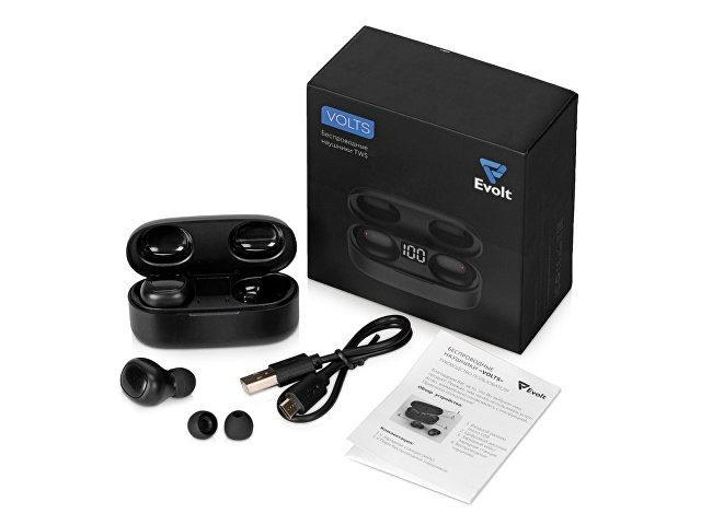 Компактные беспроводные наушники с отличным звуком и функционалом. Наслаждайтесь любимыми композициями в течение 4 часов на одном заряде. Кейс обеспечит дополнительно 3 полных заряда наушников (итого 16 ч). В кейсе расположен цифровой дисплей, чтобы видеть текущий уровень заряда. Наушники «Volts» можно использовать как гарнитуру. Многофункциональная кнопка на наушниках позволяет принимать/отклонять звонки, вызывать голосового помощника, управлять громкостью и воспроизведением. Отдельно стоит выделить практически мгновенное включение и подключение наушников. При извлечении из кейса наушники автоматически включаются, соединяются между собой и подключаются к смартфону по Bluetooth (если это не первое подключение к Вашему устройству). В комплекте – 2 наушника, зарядный кейс, зарядный кабель, запасные амбушюры и инструкция. - Отличный звук, наличие басов. - Наличие микрофона. - Мгновенное автоматическое включение и подключение. - Воспроизведение до 4 часов (16 часов с учетом зарядного кейса). - Многофункциональная кнопка для управления звонками, музыкой и голосовым ассистентом (напр. для Apple - Siri).