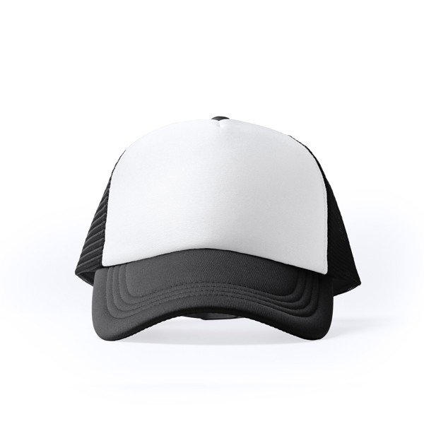 5-панельная кепка из полиэстера с мягкой лицевой панелью белого цвета. Сетчатая задняя часть и регулируемая застежка.
