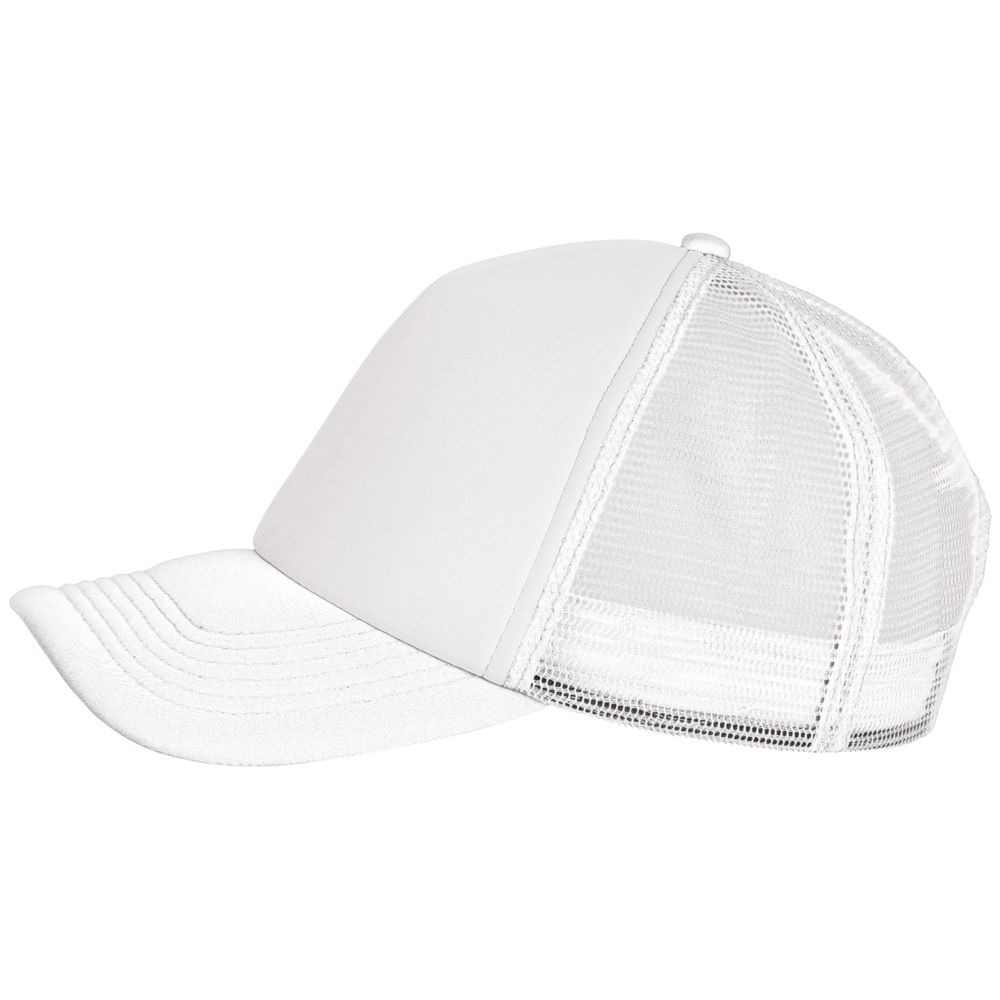 Бейсболка с 5 клиньями из сетки. Поролон в переднем клине (5 мм) и козырьке (3 мм). Регулируемая пластиковая застежка.