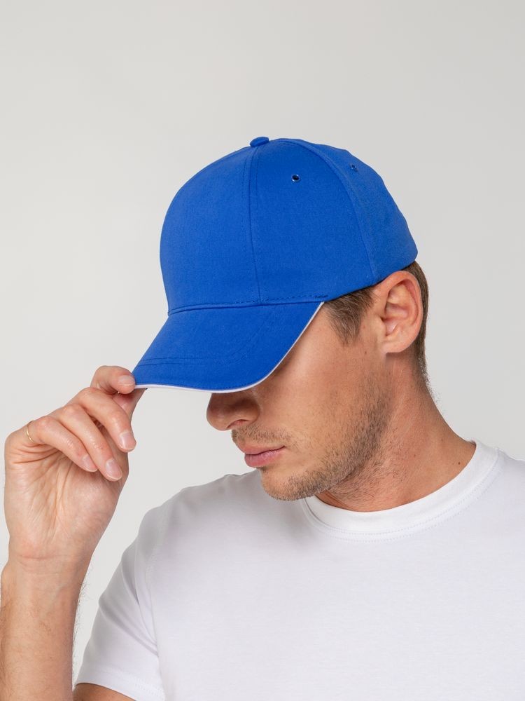 Бейсболка Canopy, ярко-синяя с белым кантом