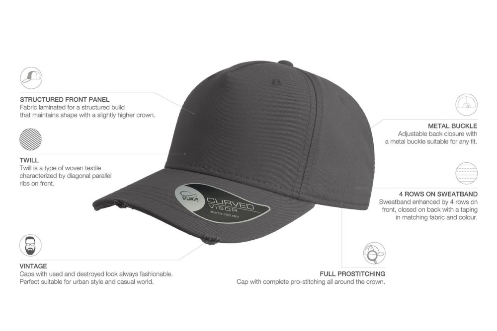 Бейсболка CARGO, 5 клиньев, металлическая застежка, Серый