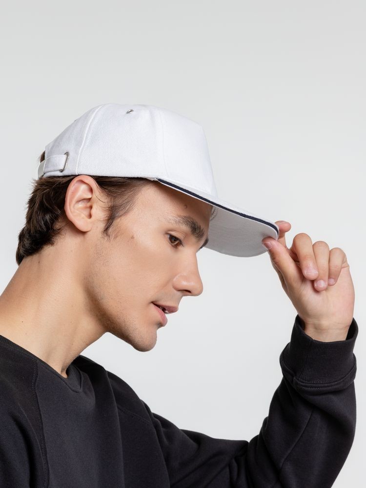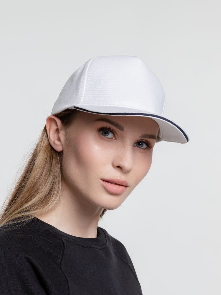 Бейсболка Classic, белая с темно-синим кантом