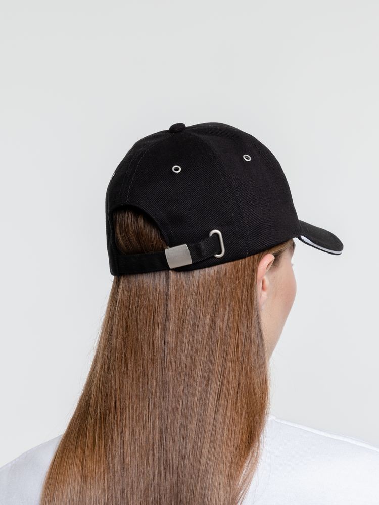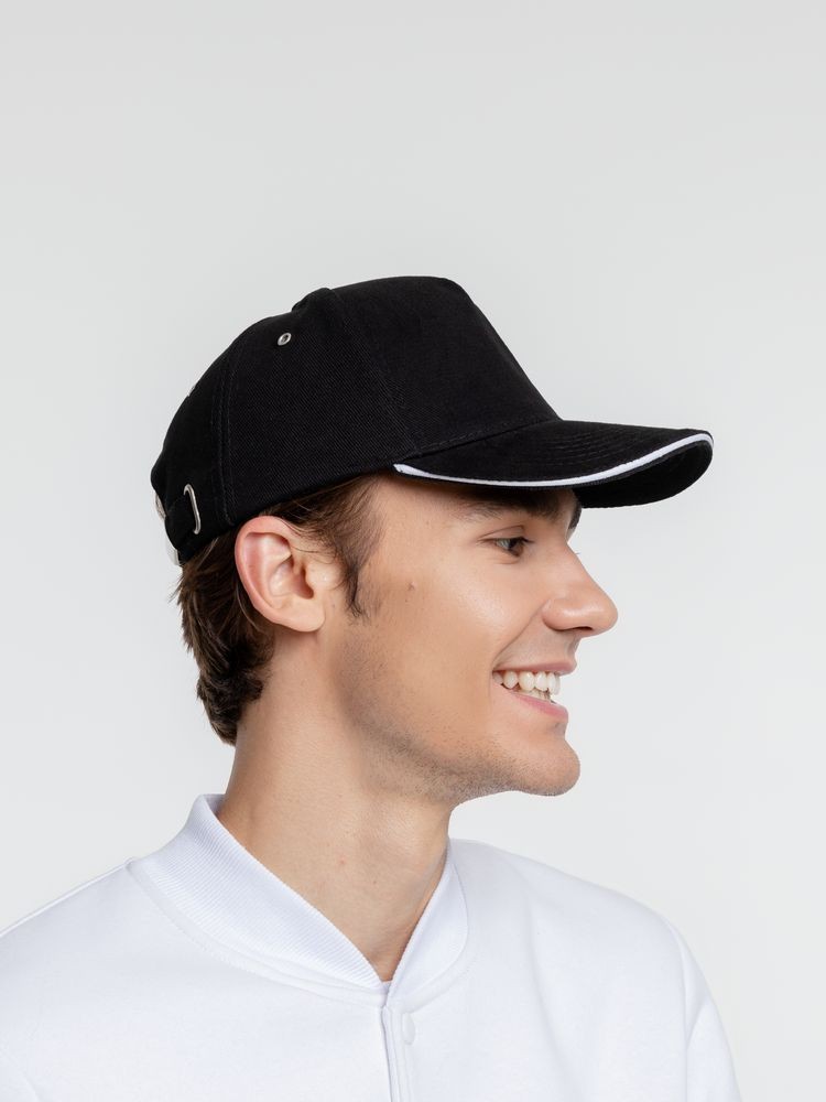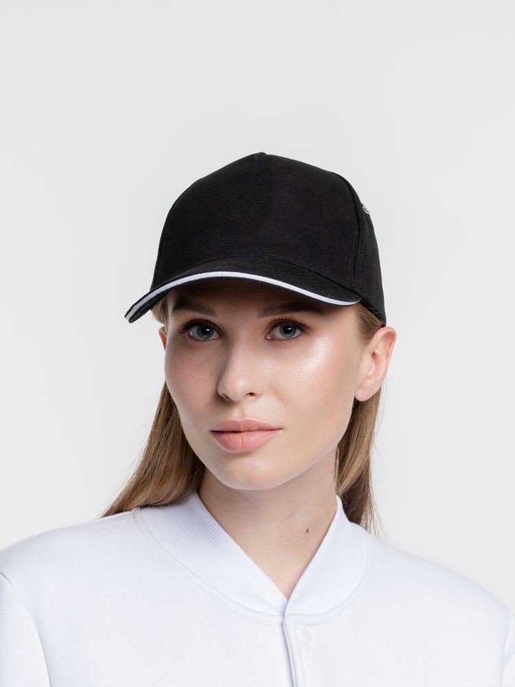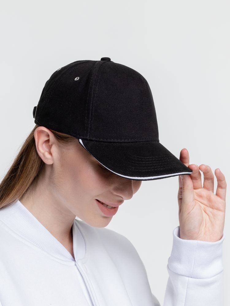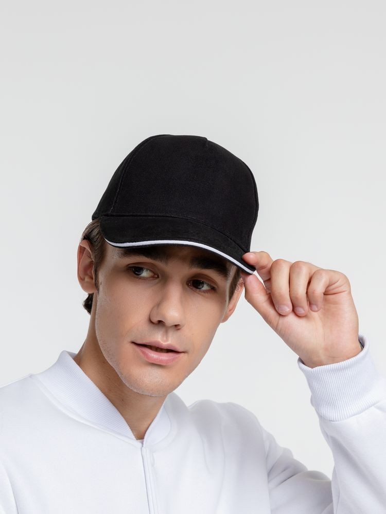 Бейсболка Classic, черная с белым кантом