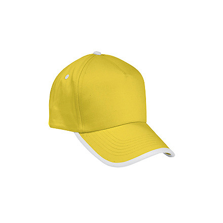 100% хлопок. 200 г/м2 саржевое плетение. 5 клиньев. Изогнутый козырек с белым кантом. Задняя застежка на липучке. 4 вышитых отверстия. Полное переднее усиление. 200 единиц в коробке. 50 штук в упаковке: 1 цвет.
