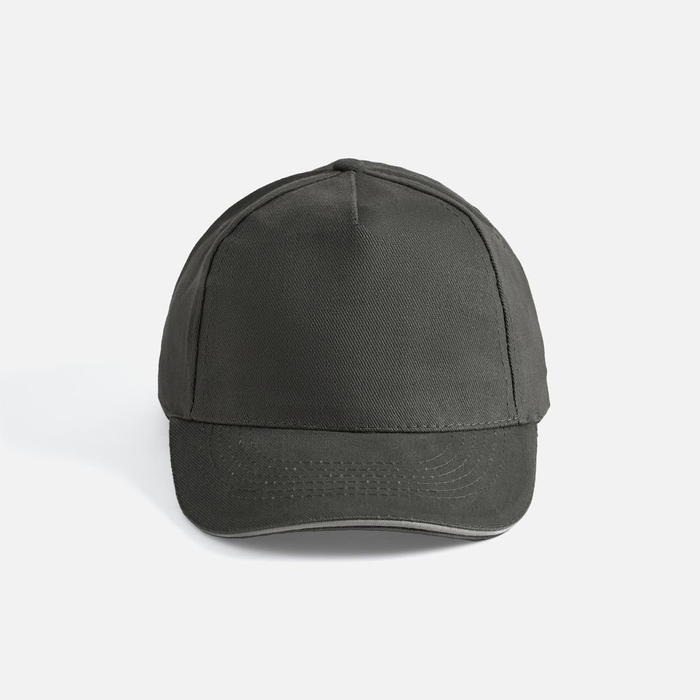 Модель бейсболки с 5-ю клиньями без лобового шва из плотного чесаного хлопка.