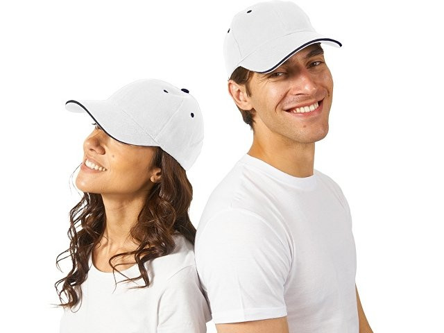 Бейсболка "New Castle" 6-ти панельная, белый/темно-синий