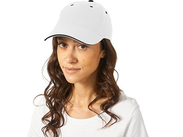 Стильная 6-панельная промо-бейсболка с контрастными деталями. Отличный выбор для яркого и запоминающегося брендинга. - Классическая бейсболка сшита из 6 панелей. - Яркие акценты – контрастная верхняя пуговичка, а также вышитые люверсы – стильная деталь, привлекающая внимание и усиливающая узнаваемость бренда. - Эффективная вентиляция: люверсы обеспечивают комфорт при носке - Премиальный вид козырька конструкции "сэндвич" с декоративным контрастным кантом по краю, не только эстетично, но и повышает жесткость и долговечность козырька. - Удобная посадка - регулируемая застежка на липучке (велкро) гарантирует идеальное прилегание на любую голову.