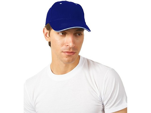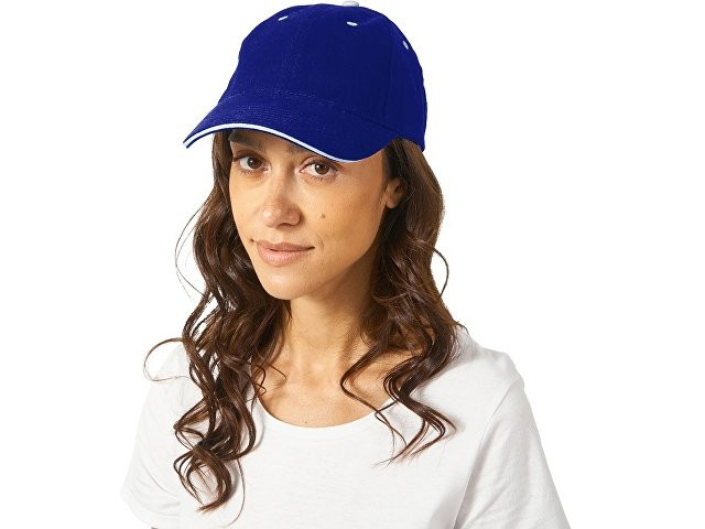 Стильная 6-панельная промо-бейсболка с контрастными деталями. Отличный выбор для яркого и запоминающегося брендинга. - Классическая бейсболка сшита из 6 панелей. - Яркие акценты – контрастная верхняя пуговичка, а также вышитые люверсы – стильная деталь, привлекающая внимание и усиливающая узнаваемость бренда. - Эффективная вентиляция: люверсы обеспечивают комфорт при носке - Премиальный вид козырька конструкции "сэндвич" с декоративным контрастным кантом по краю, не только эстетично, но и повышает жесткость и долговечность козырька. - Удобная посадка - регулируемая застежка на липучке (велкро) гарантирует идеальное прилегание на любую голову.