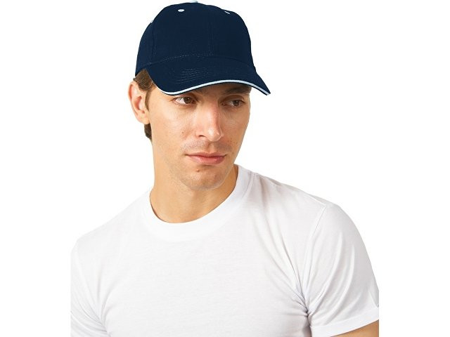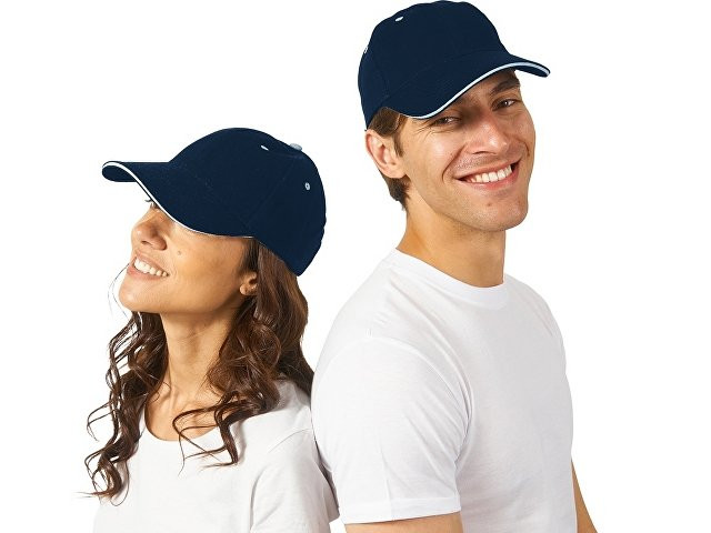 Бейсболка "New Castle" 6-ти панельная, т синий/белый