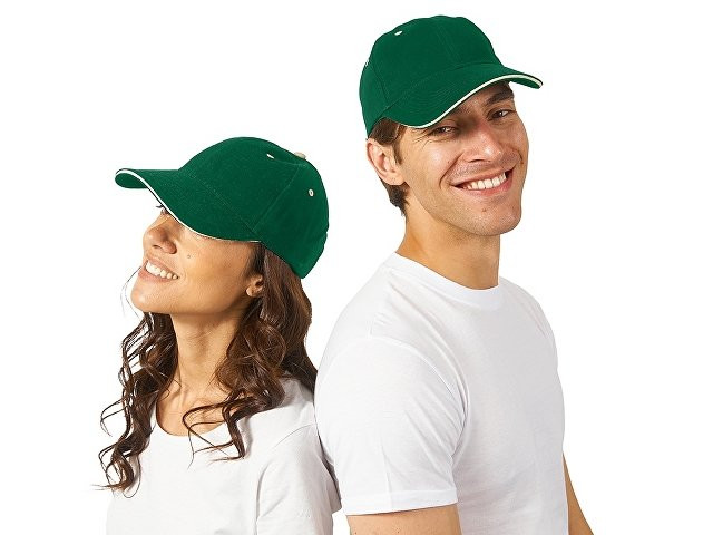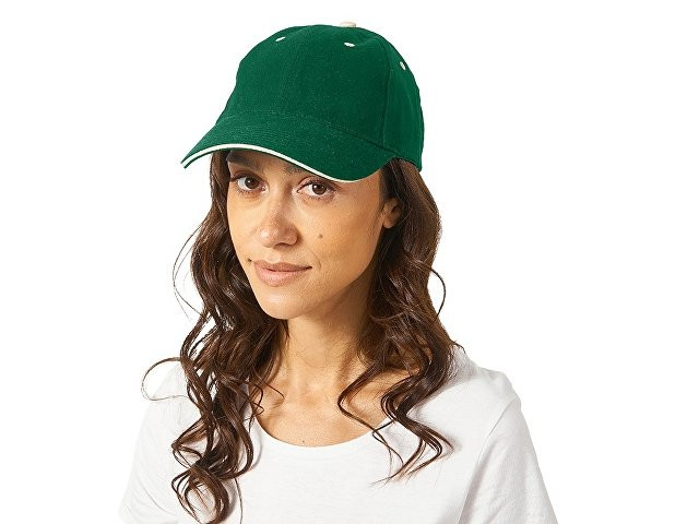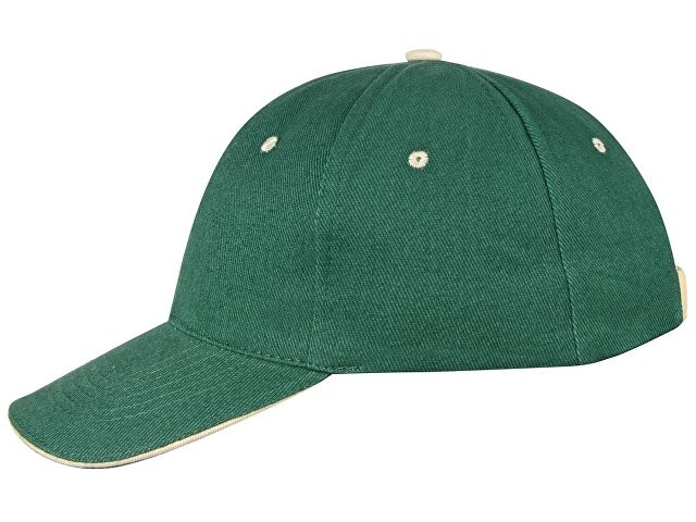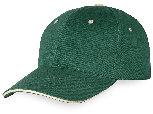 Бейсболка "New Castle" 6-ти панельная, зеленый/натуральный