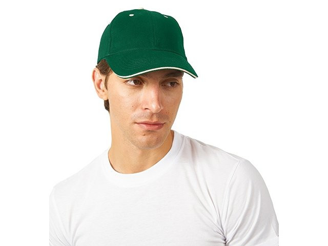 Стильная 6-панельная промо-бейсболка с контрастными деталями. Отличный выбор для яркого и запоминающегося брендинга. - Классическая бейсболка сшита из 6 панелей. - Яркие акценты – контрастная верхняя пуговичка, а также вышитые люверсы – стильная деталь, привлекающая внимание и усиливающая узнаваемость бренда. - Эффективная вентиляция: люверсы обеспечивают комфорт при носке - Премиальный вид козырька конструкции "сэндвич" с декоративным контрастным кантом по краю, не только эстетично, но и повышает жесткость и долговечность козырька. - Удобная посадка - регулируемая застежка на липучке (велкро) гарантирует идеальное прилегание на любую голову.