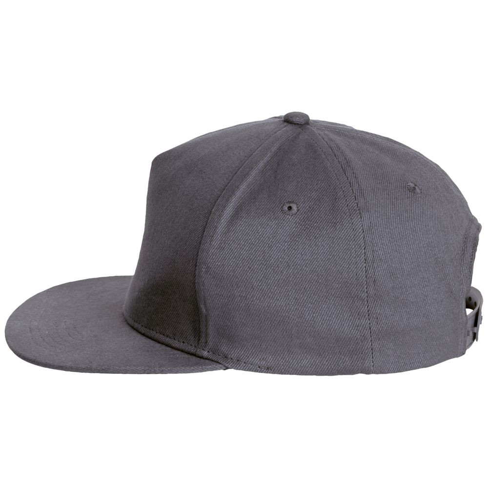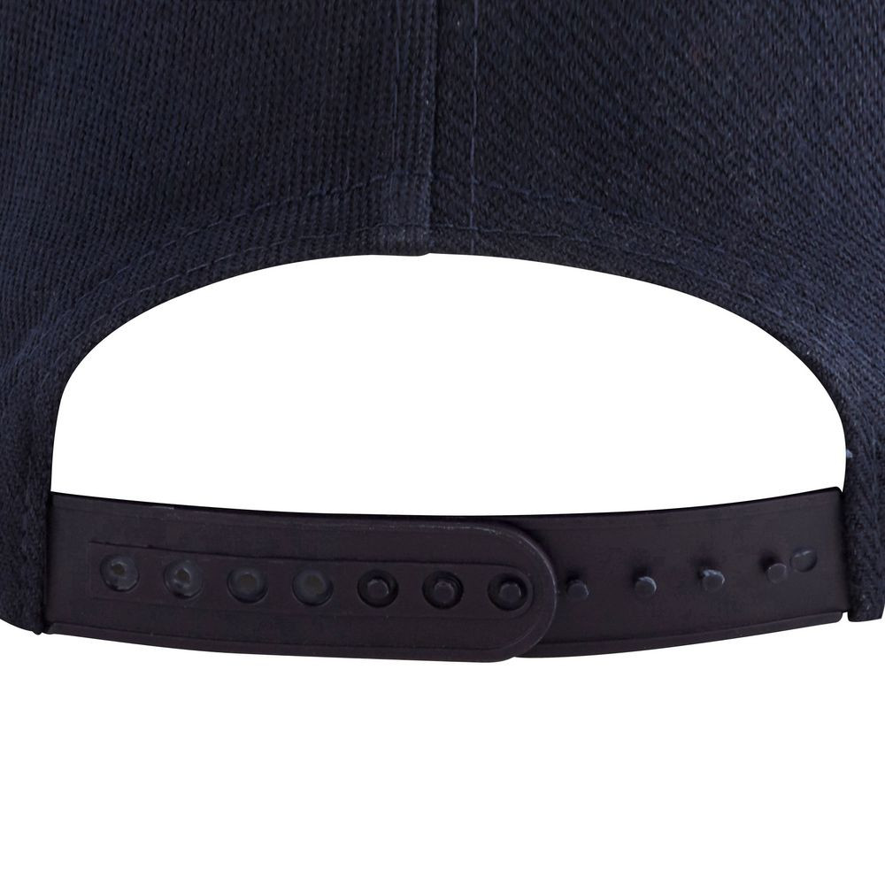 Плоский козырек, 4 вышитых отверстия для вентиляции, регулируемая пластмассовая застежка сзади.