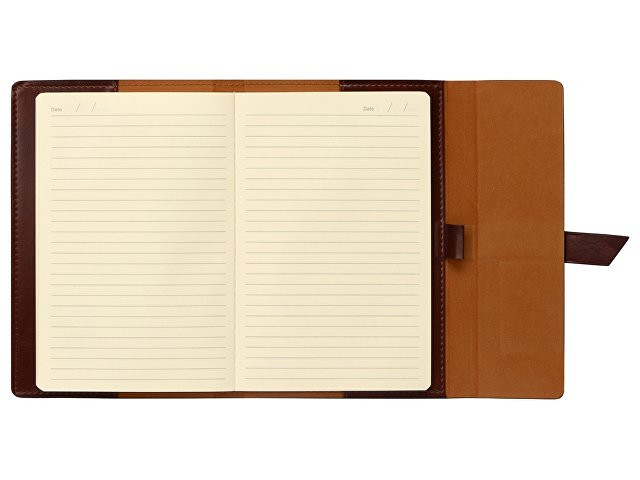 Бизнес-блокнот формата А5 в твердой обложке из искусственной кожи станет отличным подарком для любого клиента. Блокнот состоит из обложки с клапаном и сменного блока с линованными страницами. Внутри обложки есть петля для ручки в тон (ручка в комплект не входит).