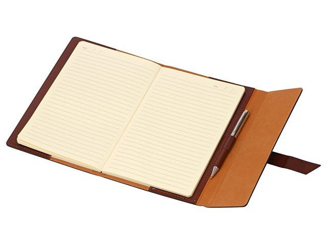 Расчет нанесенияБизнес-блокнот формата А5 в твердой обложке из искусственной кожи с ручкой в тон станет отличным подарком для любого клиента. Блокнот состоит из обложки с клапаном и сменного блока с линованными страницами.