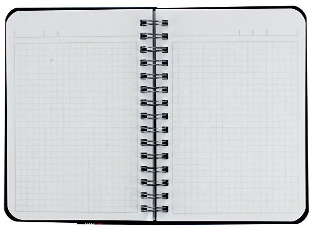 Горизонтально ориентированный блокнот для записей. Линовка блока - клетка. Обложка сделана из матового непрозрачного пластика. Крепление блокнота на гребне позволяет открывать его на 360 градусов. При необходимости листы легко вырываются, не нарушая целостности блока. Блокнот подходит для записей небольшого объема информации. Готов к персонализации.