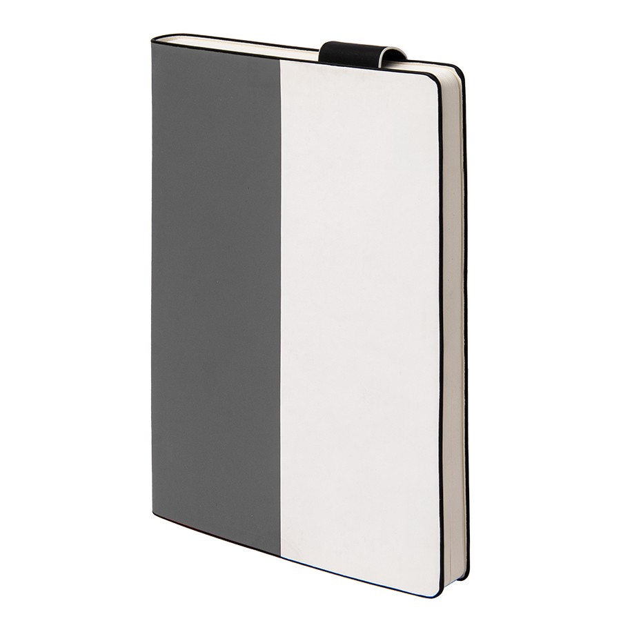 Бизнес-блокнот UNI, A5, бело-красный, мягкая обложка, в линейку, черное ляссе, Серый