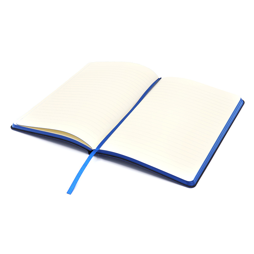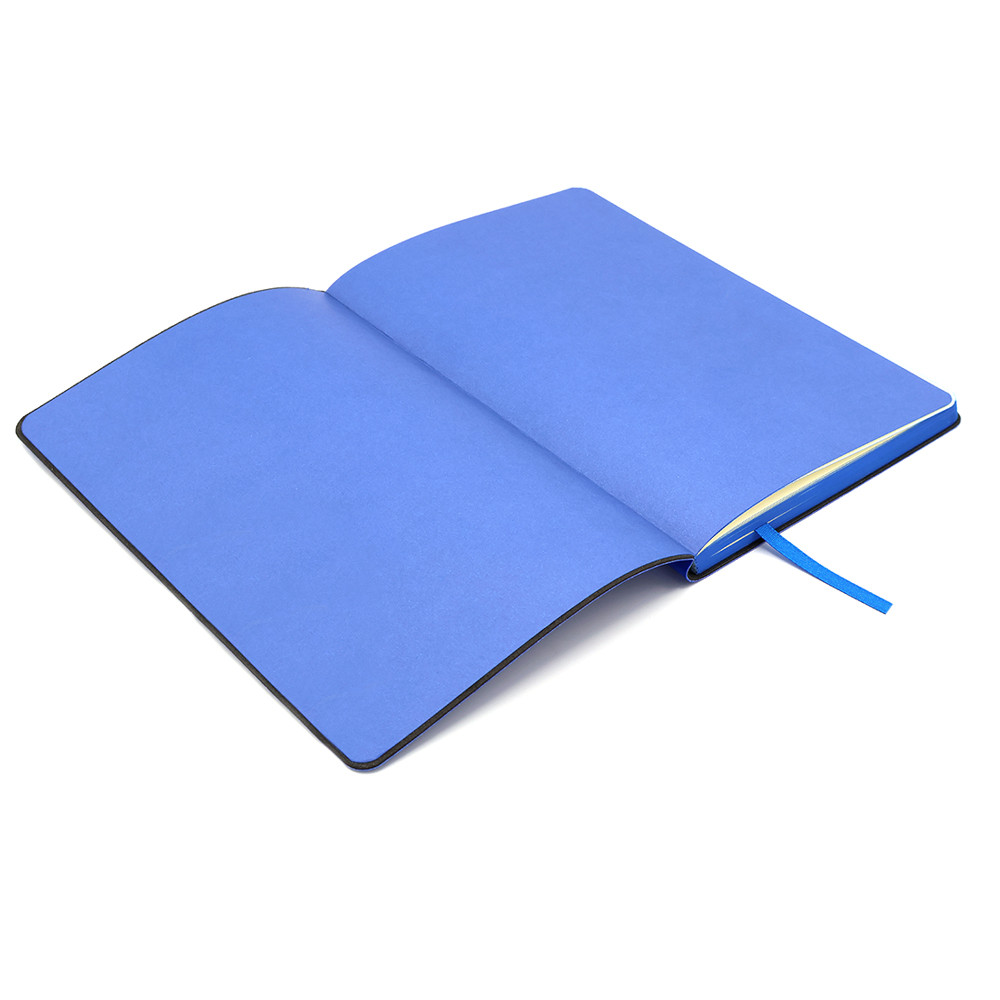 Блонот формата А5 в мягкой обложке из искусственной кожи. Материал обложки - полиуретан. Размеры: 213*143мм, 96 листов, разлинееные страницы, бумага плотностью 70г/м2, срез прокрашен в цвет обложки. Ляссе в цвет обложки.