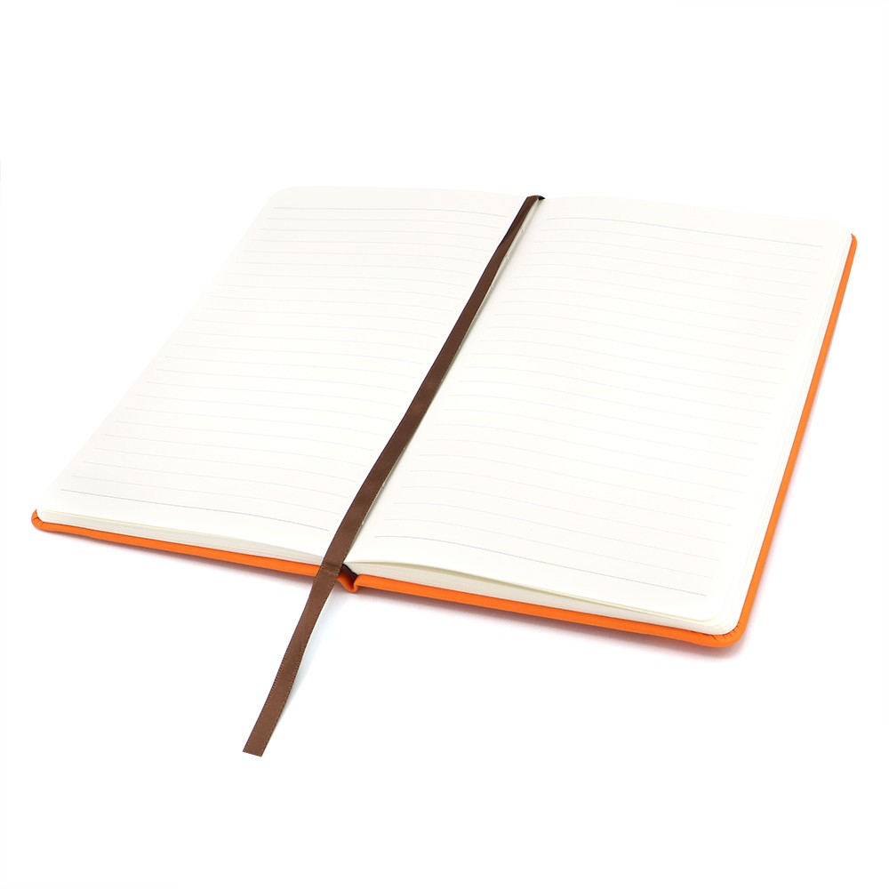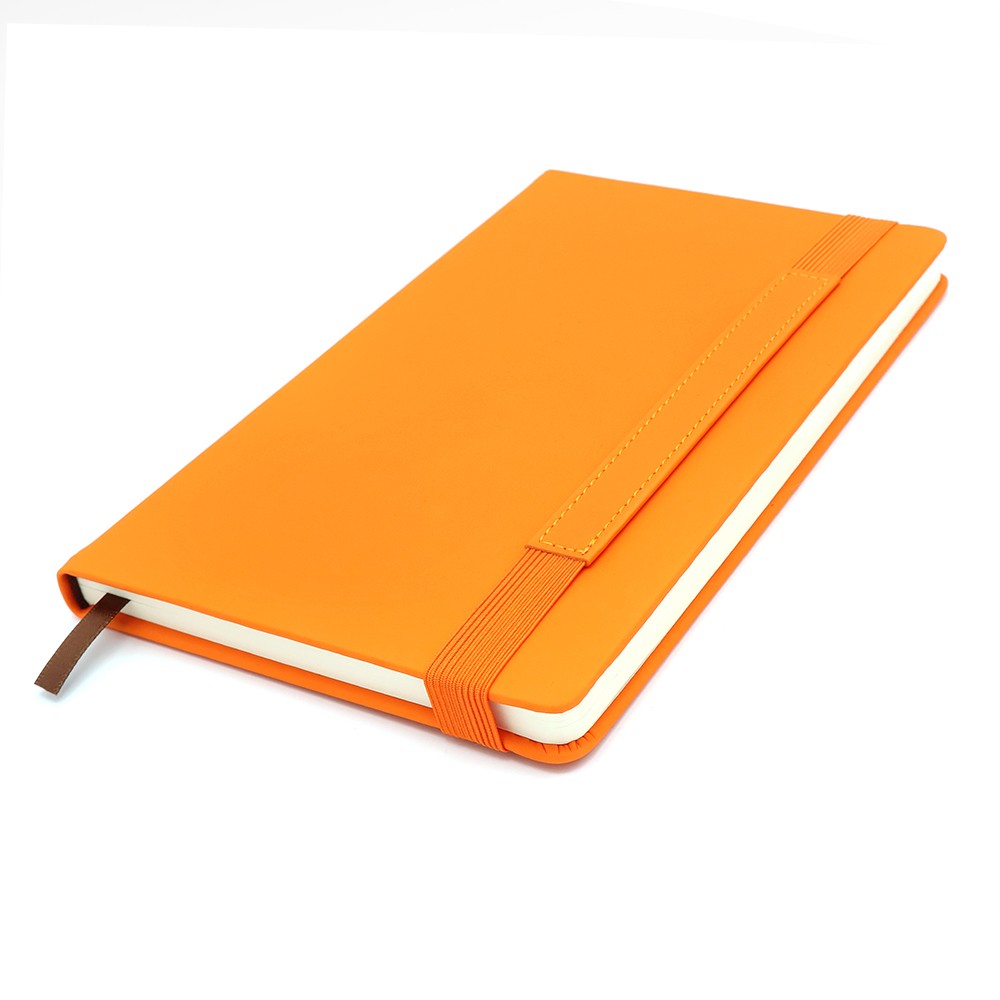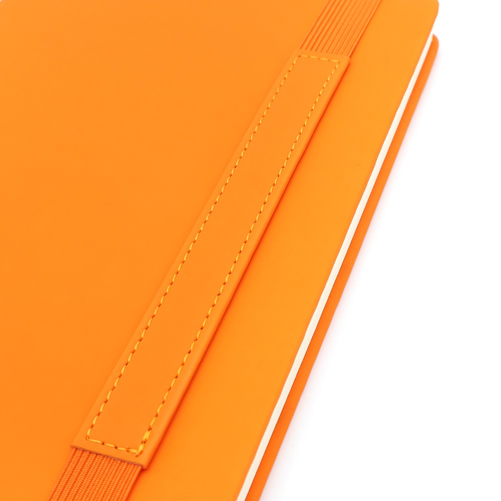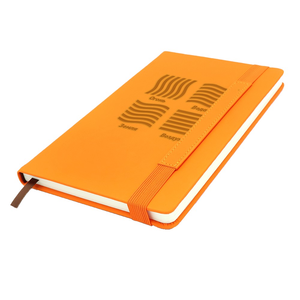 Блокнот формата А5 в твёрдой обложке из искусственной кожи. Материал обложки — термополиуретан, текстура — гладкая. Из особенностей: широкая эластичная застёжка со вставкой из кожзама. На неё можно нанести логотип либо слоган вашей компании. Размеры: 214*138*17 мм, 192 страницы / 96 листов, страницы разлинееные, бумага плотностью 80 г/м2. Размер вставки из кожзама 134*17 мм; ширина застёжки — 15 мм.