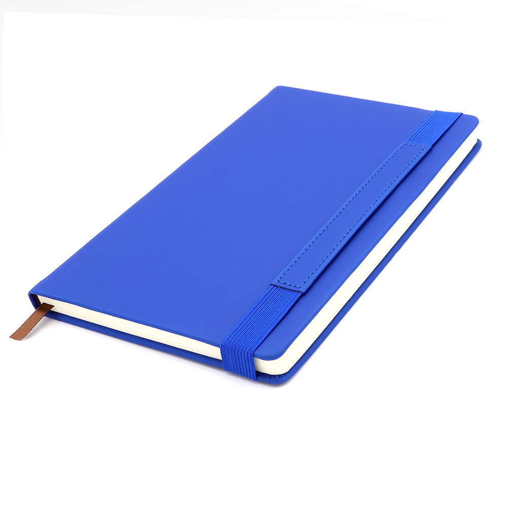 Блокнот формата А5 в твёрдой обложке из искусственной кожи. Материал обложки — термополиуретан, текстура — гладкая. Из особенностей: широкая эластичная застёжка со вставкой из кожзама. На неё можно нанести логотип либо слоган вашей компании. Размеры: 214*138*17 мм, 192 страницы / 96 листов, страницы разлинееные, бумага плотностью 80 г/м2. Размер вставки из кожзама 134*17 мм; ширина застёжки — 15 мм.