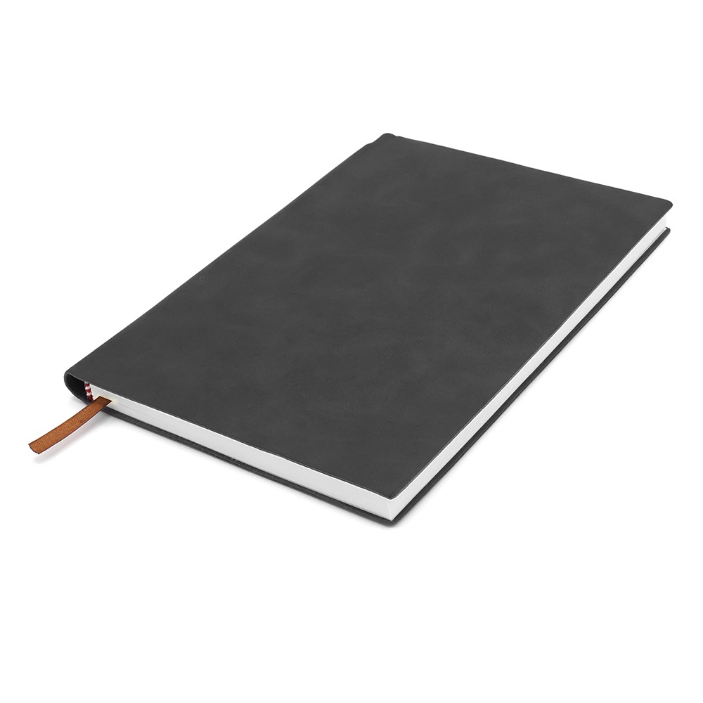 Блокнот формата А5 в мягкой обложке из искусственной кожи. Материал обложки — полиуретан. Текстура — гладкая с эмитацией натуральной кожи. Для удобства переноски ручки в корешке блокнота присутствует ниша, к которой ручка крепится за клип. Размеры: 210*154мм, 192 страницы / 96 листов, разлинееные страницы, бумага плотностью 80г/м2. Ляссе из текстиля.
