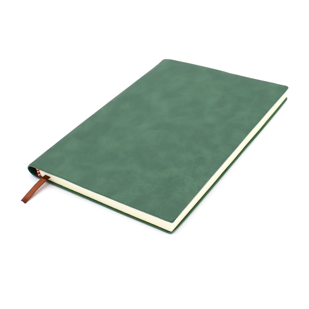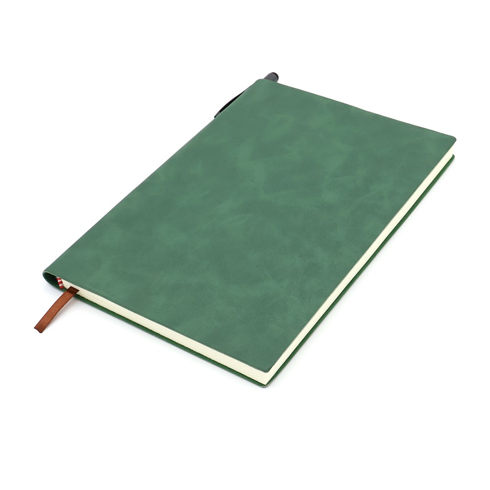 Блокнот формата А5 в мягкой обложке из искусственной кожи. Материал обложки — полиуретан. Текстура — гладкая с эмитацией натуральной кожи. Для удобства переноски ручки в корешке блокнота присутствует ниша, к которой ручка крепится за клип. Размеры: 210*154мм, 192 страницы / 96 листов, разлинееные страницы, бумага плотностью 80г/м2. Ляссе из текстиля.