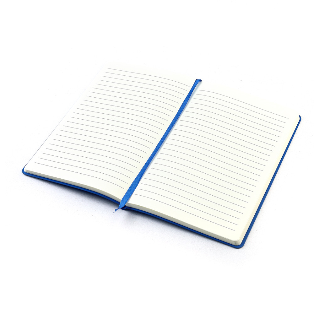 Блокнот формата А5 с мягкой обложкой из PU-материала, имеющего текстуру, имитирующую поверхность натуральной кожи; с эластичной застежкой для закрытия и текстильной закладкой в цвет блокнота, 256 страниц, плотностью 70г/м, страницы с черными линиями. Цвет по PANTONE® (максимально приближен): 4154C.
