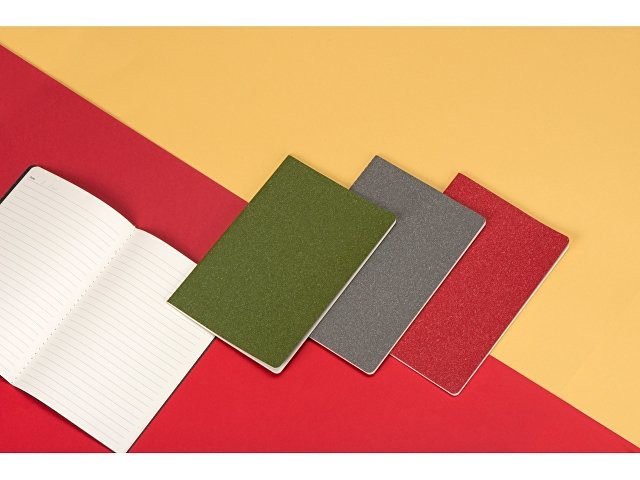 Универсальный блокнот в трендовых оттенках. Обложка матового цвета с эффектом "меланж". Прошитый нитками блок на 60 линованных страниц.