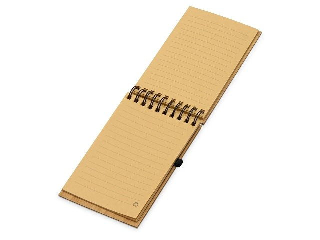 Расчет нанесенияОригинальный блокнот с обложкой из бамбука и картона, а также блоком из переработанной бумаги. Петля для ручки и горизонтальная резинка расширяют функциональность.