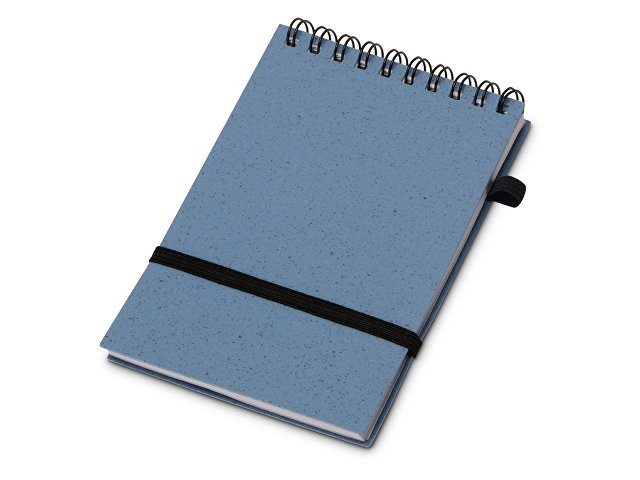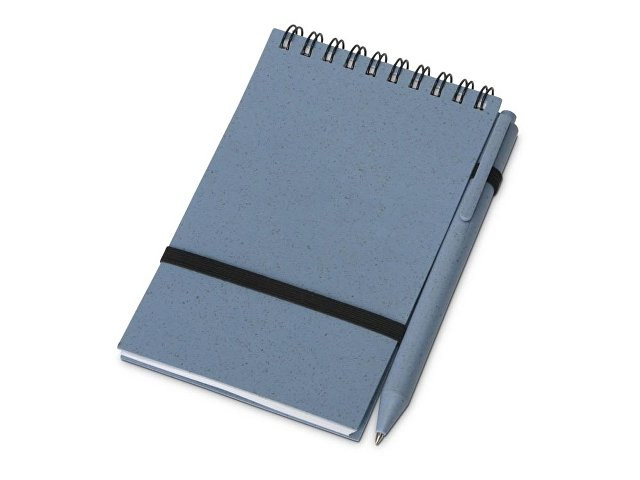 Блокнот с обложкой из переработанной пшеницы и пластика. Блок состоит из 60 листов переработанной бумаги белого цвета. Крепление - пружина. В комплекте шариковая ручка из пшеничной соломы.