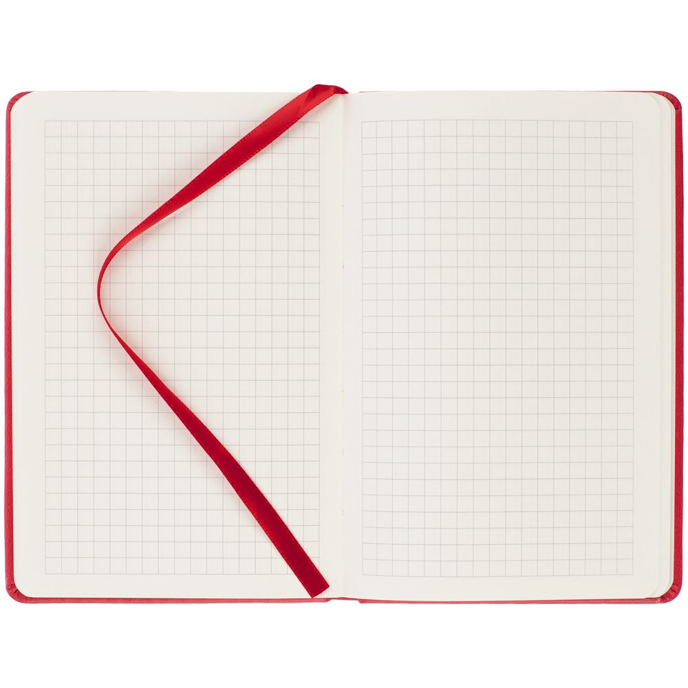 Твердая обложка из материала Latte, красный, ляссе в цвет обложки.