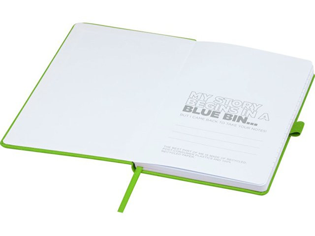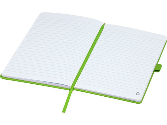 Блокнот формата А5 с обложкой из переработанного ПЭТ. Содержит 80 листов в линию плотностью 70 г/м², изготовленных из переработанной бумаги, с петлей для ручки и лентой-закладкой. Может быть дополнен шариковой ручкой Honua 107757 из переработанного ПЭТ. Переработанный PET пластик.