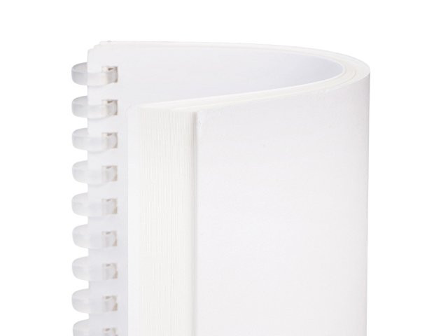 Идеальный вариант для практичного сувенира. Мягкая прозрачная спираль облегчает блокнот, а гибкая обложка позволит сэкономить место в сумке, свернув блокнот. Блок из плотной бумаги 70 г/м2 разлинован в клетку. - формат А5; - 60 листов; - полезный промо-сувенир.