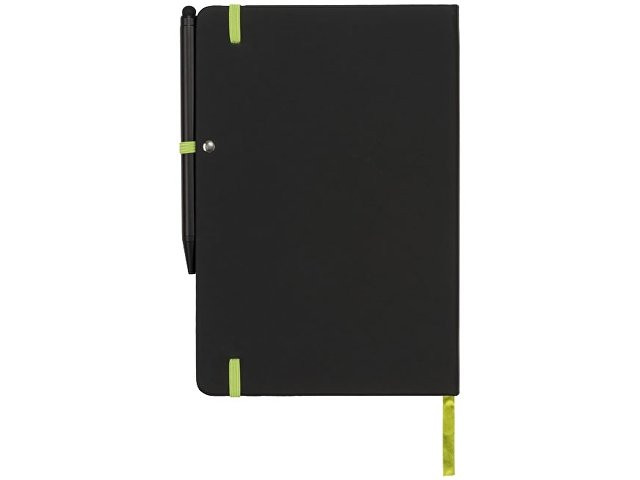 Блокнот Noir Edge среднего размера. Современный и стильный черный блокнот с мягкой на ощупь обложкой. Цветной край и цветные маркеры страниц, застежка-держатель для ручки. Предлагается с черной шариковой ручкой-стилусом. Блокнот содержит 96 листов линованной бумаги (70 г/м²) кремового цвета. ПУ.