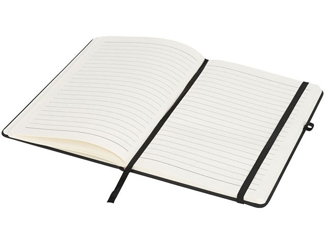 Блокнот Noir среднего размера. Блокнот Noir с мягкой на ощупь черной ПУ обложкой. В каждом блокноте есть цветная застежка, держатель для ручки и лента-закладка. Блокнот содержит 96 листов линованной бумаги (70 г/м²) кремового цвета. ПУ.