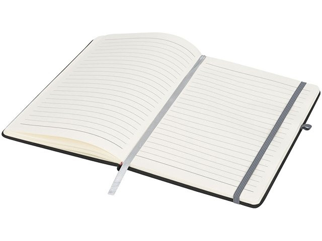 Блокнот Noir среднего размера. Блокнот Noir с мягкой на ощупь черной ПУ обложкой. В каждом блокноте есть цветная застежка, держатель для ручки и лента-закладка. Блокнот содержит 96 листов линованной бумаги (70 г/м²) кремового цвета. ПУ.