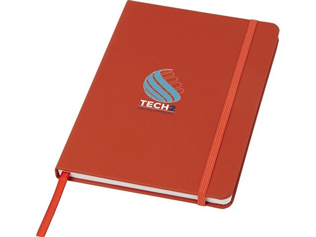 Блокнот А5 с цветной резинкой и закладкой. 96 листов белой бумаги (60 г/м2). FSC certified paper, PU Plastic. FSC Mix Credit P7.1 CU-COC-877277.