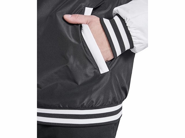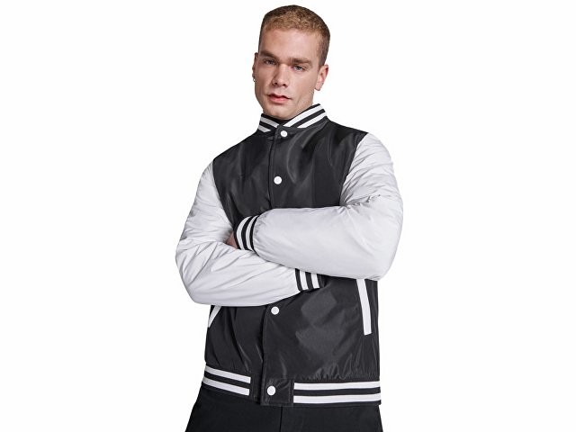 Расчет нанесенияУтепленный бомбер колорблок из двух цветов. Воротник, манжеты и низ из риба 1х1 с двумя контрастными полосами. Боковые карманы закрываются на молнию. Контрастный кнопки.