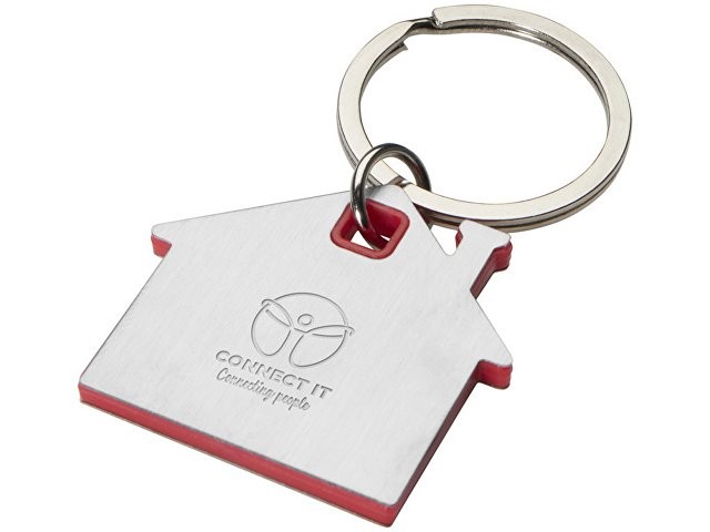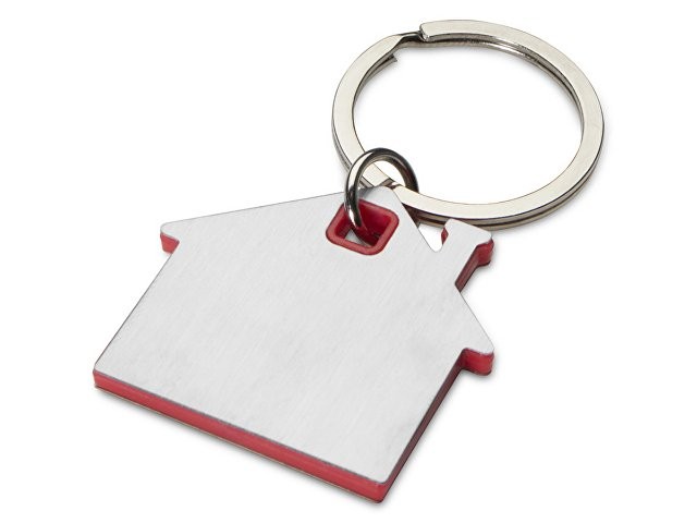 Расчет нанесенияБрелок для ключей в форме домика с цветной вставкой из пластика между 2-мя серебристыми пластинами из стали.